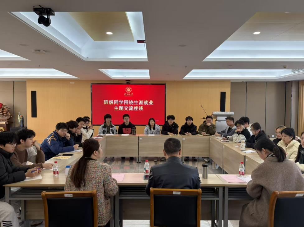12月9日,“领导干部联系班级”座谈会在严恺馆702举办,港航院院长龚政、2023级海资一班班导师张茜、辅导员廖芳艺以及2023级海资1班全体成员参与本次活动。