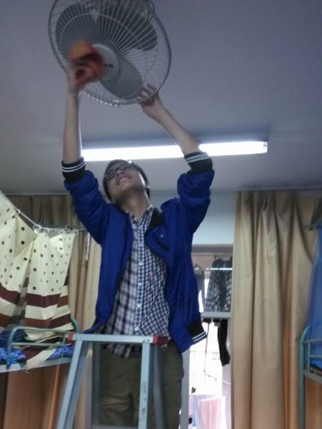 夏天是疾病多发季节,尤其要注意好卫生工作,宿舍电扇卫生更是重中之重,如果不在使用前好好清理一番,上面累积许久的灰尘会造成极大的健康隐患。但是,宿舍电扇都是固定在三米多高的屋顶上,对于一般女生而言清洗风扇难度颇大,为此催生了本次活动。