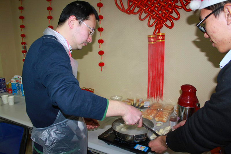 为了让留学生们能体会到我们传统中国新年的喜庆氛围,学院特地为留学生准备了一道重头戏——教留学生们包饺子。陈院长现身说法,亲自示范了如何擀面皮、包饺子。学院领导和老师也都全程参与其中,现场气氛一度达到了高潮。姜书记和陈院长为大家煮起了饺子,留学生们都是第一次包饺子,他们包出来的饺子造型独特,形状各异,但这丝毫不影响他们品尝饺子的心情。为了让这15位中港留学生在中国度过一个有意义的圣诞节,我们特地为留学生们准备了刻有他们中文名字的印章。郑院长更是亲自扮演起圣诞老人,给大家送上圣诞节礼物,也带来圣诞节的惊喜和感动。