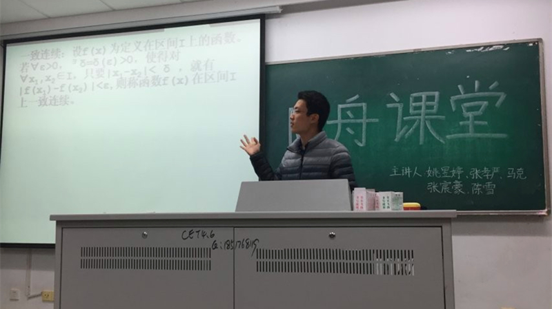 2015年11月12日晚,港航院团委朋辈辅导站“同舟课堂”互助式辅导于致用302如期举行。14级学生姚昱婷、张孝严、张宸豪、马克和陈雪等担任了本次课堂的志愿讲师。