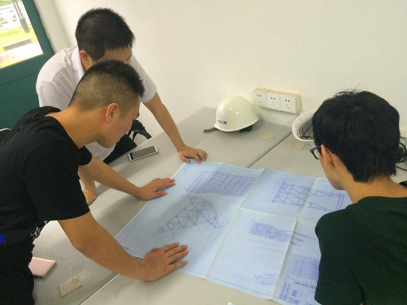 “纸上得来终觉浅,绝知此事要躬行”,下午,孙恩林学长带领队员们到工地参观学习。队员们参观了大治河及其周围环境,观看了柴油锤打桩机和高压旋喷桩机的工作过程,并了解了机器的原理和构造。最后,队员们来到施工处办公室,查看了大治河西枢纽新建二线船闸工程的相关图纸,第一次接触工程施工图纸,队员们都感慨工程设计的精细与规范。