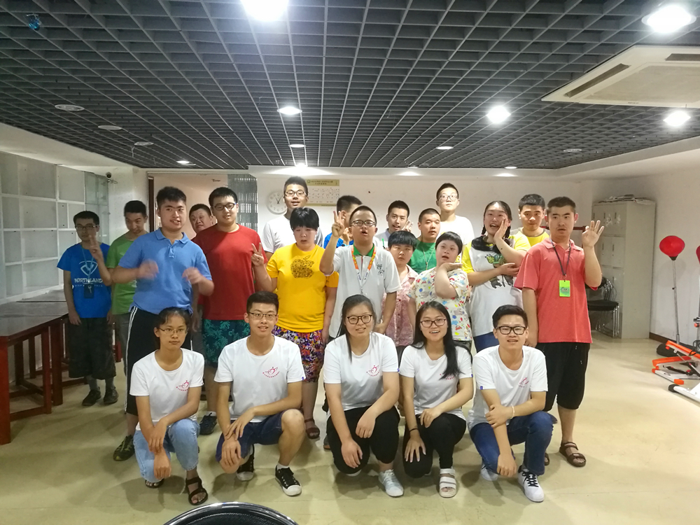 活动期间,队员们曾与南京农业大学、南京航空航天大学的团队合作,一起给孩子们上课,和孩子们做手工、唱歌等等。尽管这些孩子们在智力方面有缺陷,但他们和正常人一样热爱生活,他们天真烂漫,活泼开朗,他们的热情很容易就感染到了身边人。队员们还与南京农业大学的团队合作一起采访了中心的黄俊灿老师、负责人廉杰,从他们口中了解到中心十分缺乏专业的老师,社会给予那些孩子的福利还远远不够,工作人员的待遇也有待提高,中心每年都是入不敷出,但是令人喜悦的是社会对残障人士的关注度正在逐步提高,人们也在逐渐接受并了解这么一个特殊的群体。