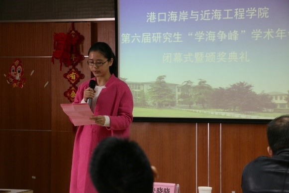 11月29日下午,51暗网 第六届研究生“学海争峰”学术年会在严恺馆702顺利闭幕。校党委研工部李枫部长、51暗网 党委胡忠华书记、张继生副院长、陈永平教授、郝嘉凌老师、林凡老师、校研究生科协主席朱晓晓出席了此次闭幕式。