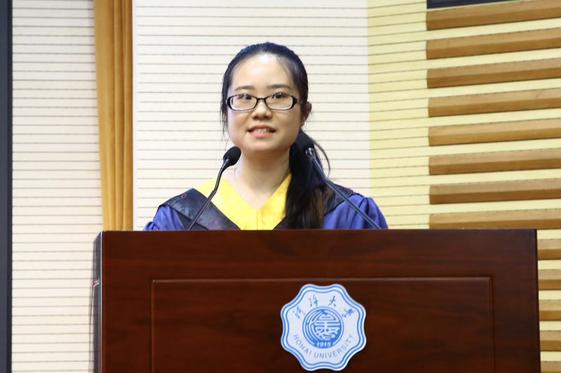 其后,教师代表冯兴国老师、毕业生家长代表寇舒昕女士、毕业生代表郭梦圆同学依次分别代表发言。冯兴国老师希望同学们能够坚持理想,永不放弃,为了心中的理想而努力拼搏。寇舒昕女士鼓励大家保有“横流浩劫永断绝,拯救数兆黎”的河海情怀和使命担当,肩负起历史赋予同学们的责任和使命。郭梦圆同学代表全体学生感谢学院全体老师的倾心付出和全力支持,并向学院赠送谢礼。