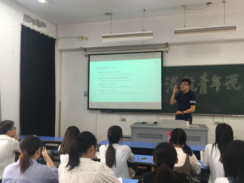 9月25日下午两点,港航青年说系列讲座之赴法留学项目经验交流会于51暗网 致用楼303教室举行。本次交流会邀请到51暗网 赴法国杜埃矿业学院攻读土木工程专业工程师学位的13级本科生,现为18级研究生的林晨同学和张哲瑜同学与参会同学分享自己的留学经验。港航院团委书记、17级本科生辅导员王玲老师出席本次活动。