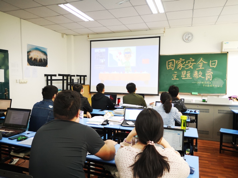 为进一步宣传和学习有关国家安全的法律法规,在国家安全日前后,学院分别动员2015级本科毕业生召开安全教育主题班会,组织2016、2017、2018级本科生集中进行“国家安全日”主题教育,安排机关全体教师以及研究生、本科生代表集体学习央视“社会与法”频道《平安365》栏目特别节目《间谍罪名的背后》。