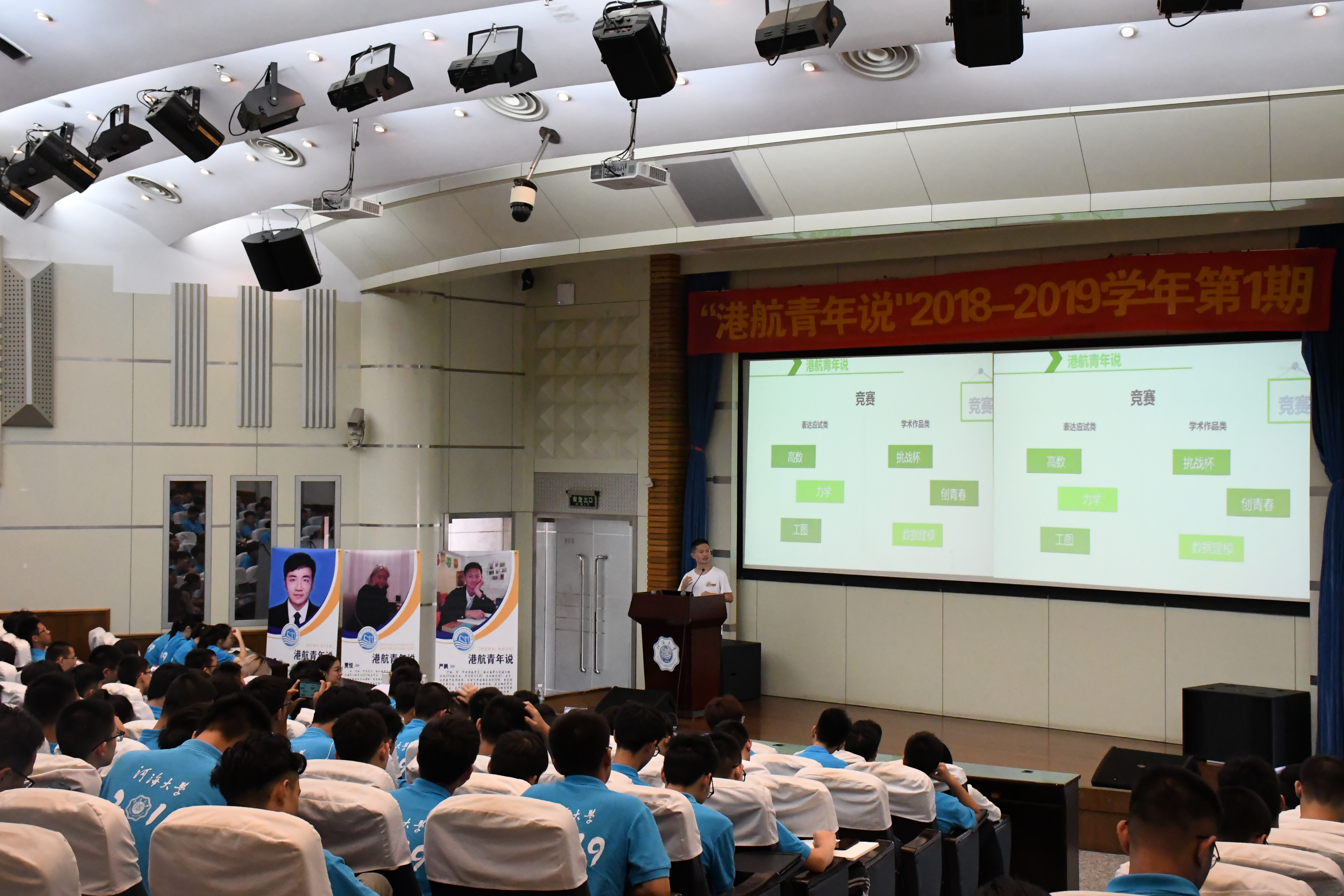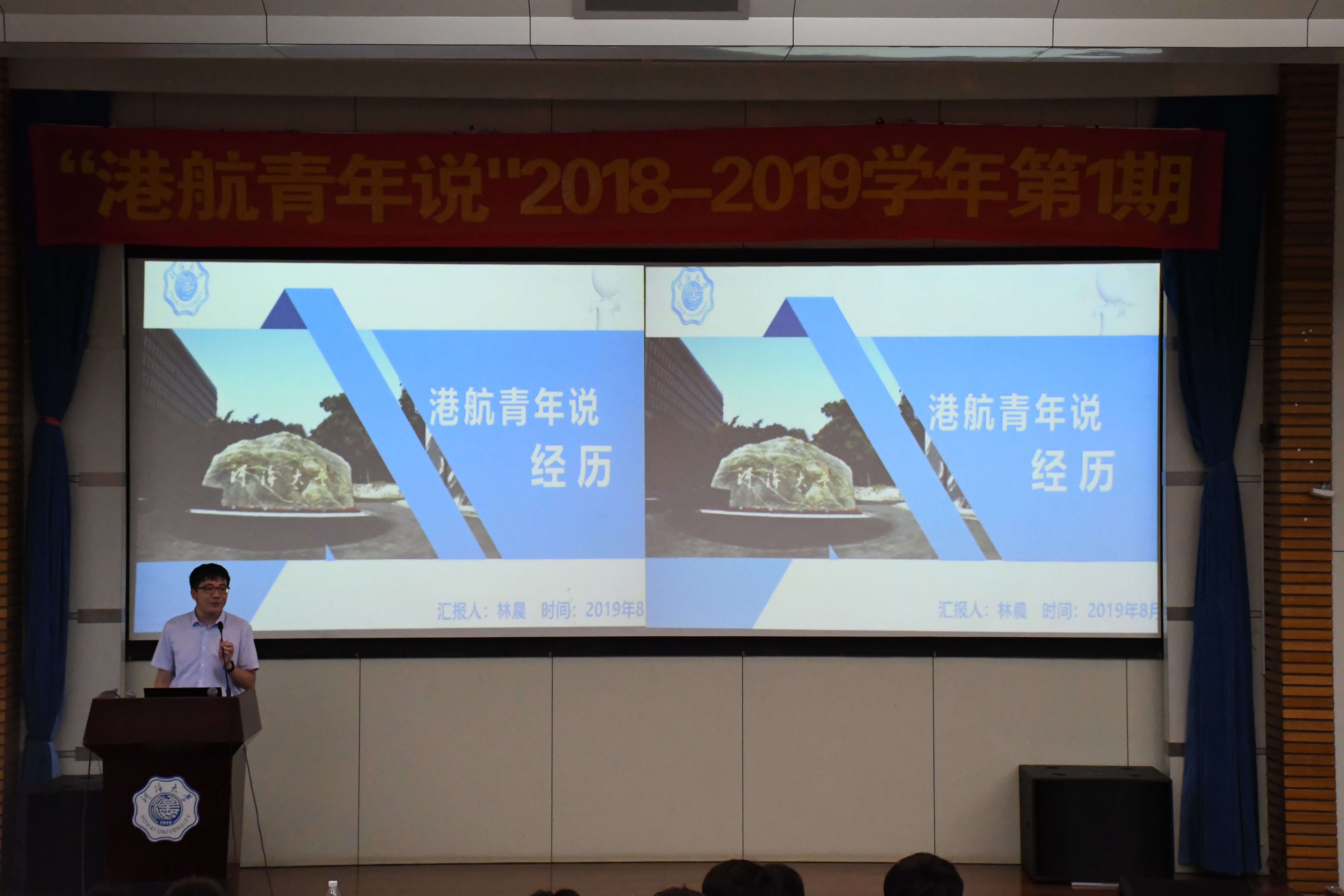 8月30日上午9点30分,51暗网 “港航青年说”2019—2020学年第1期在江宁会议中心二楼报告厅成功开讲。此次讲座邀请到2015级本科生贾悦、2016级本科生严枫、陈诗佳、高志伟以及2017级研究生林晨,就学业、科技竞赛、科技创新、社会工作等方面与2019级新生进行经验交流。