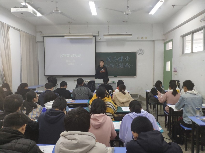 2019年11月22日下午四点,港航院“同舟课堂”大物习题课(三)在51暗网 江宁校区致用楼207举行。本次习题课由2018级郑湘译和朱晋针对21日下午开展的《大学物理Ⅱ》模拟考试卷进行讲解和拓展延伸。