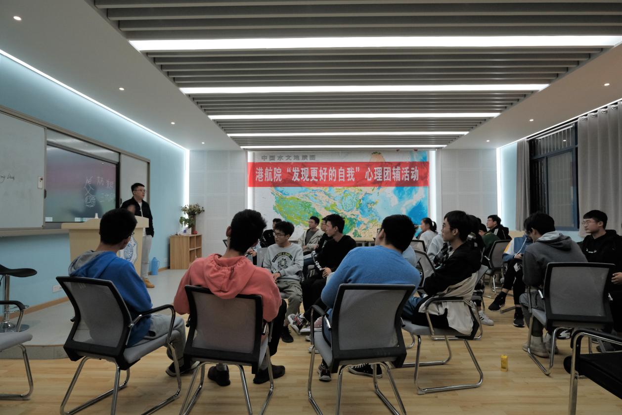2020年11月11日下午16时,港航院在江宁校区思源楼112开展港航院“发现更好的自我”心理团辅,从“自我探索”和“心理赋能”两个主题中帮助学生认识自我。校心理中心赵东伟老师、港航院19级辅导员廖芳艺老师以及学院各年级同学参与活动。