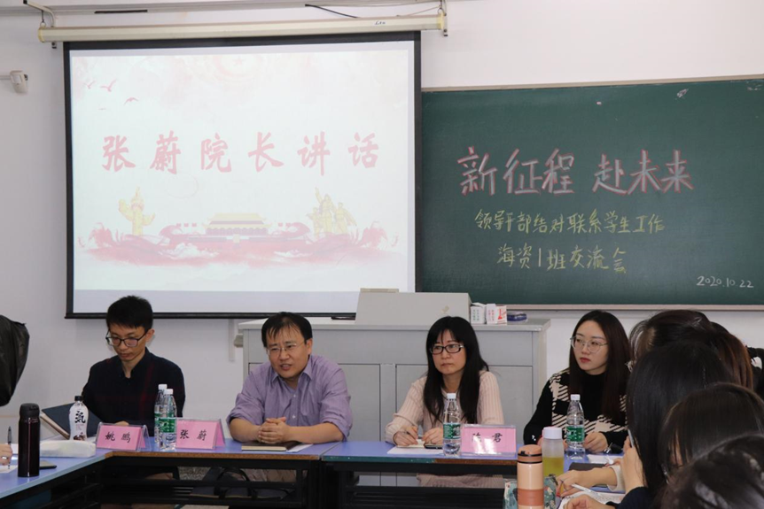近期,“新征程,赴未来——学院领导结对联系2019级海资1班”在江宁校区致用楼504教室举行。港航院张蔚副院长、海岸带资源与环境研究所陈君副所长、海资1班班导师姚鹏、2019级辅导员廖芳艺参加此次座谈会,与海资1班全体同学开展新学期的交流。