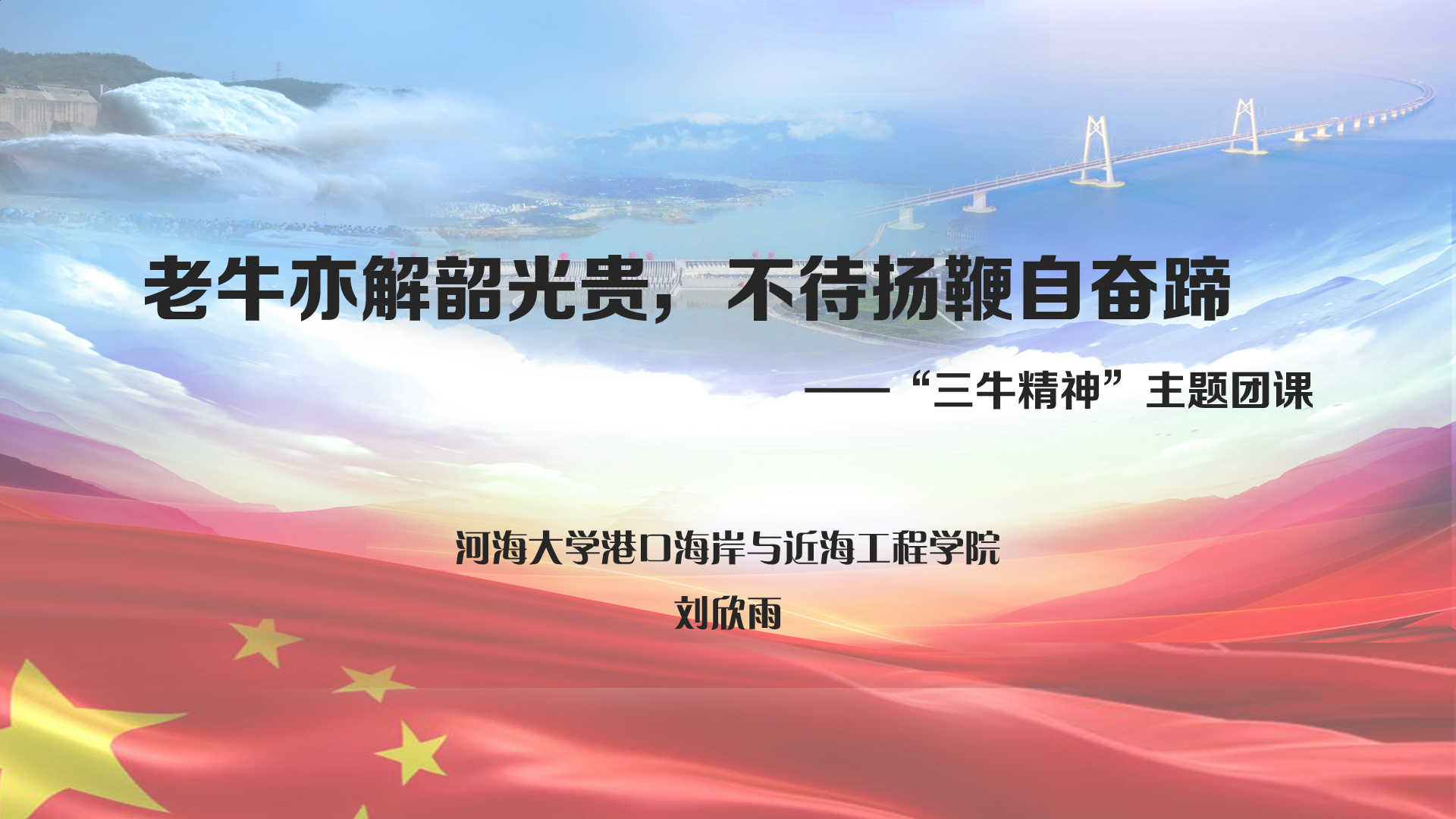 省级决赛以线下赛的形式举行,包括团支部书记上团课现场展示、学党史主题团日活动现场展示等环节。刘欣雨同学讲述以全国政协新年茶话会习近平总书记提出的“三牛精神”为主题的团课,分别围绕着新时代“三牛精神”的内涵,践行“三牛精神”的价值以及青年学生如何践行“三牛精神”,把时代楷模经历与党史、“三牛精神”紧密结合。作为新一代水之子,呼吁广大青年团员要做到立大志,明大德,成大才,担大任。