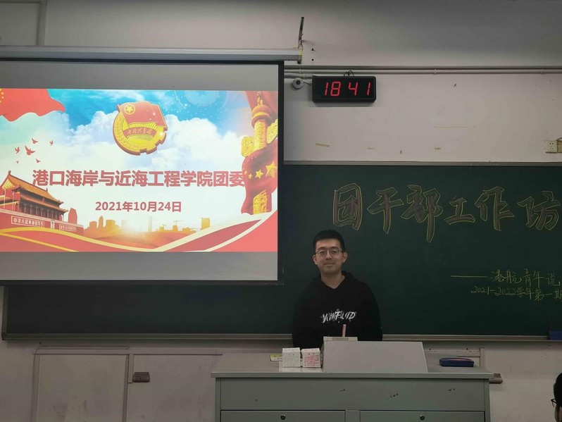为帮助团干部更好地掌握团务工作要求,高效轻松地开展各项学生工作,港航院于10月24日晚在江宁校区致高楼A212举办了团干部工作坊。本次培训会由港航院团委副书记兼团建指导员李昊主讲,港航院2020级、2021级的全体团干部参加,2020级辅导员林晨老师主持。同时,本次工作坊也面向对团务工作及学生工作能力感兴趣的同学开放。