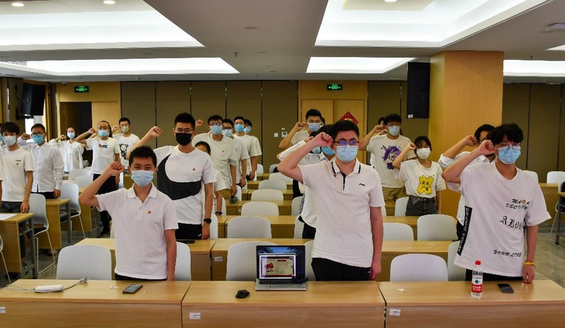 港航院2019级本科生年级团支书徐航同学带领学生学习了习近平总书记在中国人民大学考察时的重要讲话精神。为迎接建团百年,传承和发扬五四精神,港航院2019级本科生辅导员廖芳艺老师带领学生重温入团仪式、共宣入团誓词。
