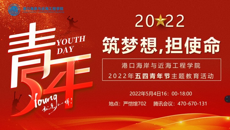 2022年5月4日下午,港航学院2019级组织开展了“筑梦想,担使命”五四青年节主题教育活动。本次活动特别邀请长江航道工程局华东分公司总经理助理马玉宝、中交广航局设研院副总经理刘锦秀、学院研究生辅导员林凡老师为2019级学生开展五四主题教育,结合校友基层建设经历,引导学生专业报国,投身国家战略建设。