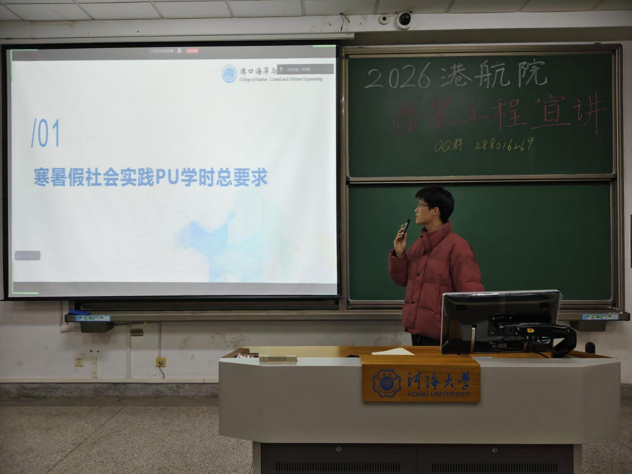 12月24日晚,51暗网 在致高楼 B211 教室成功举办 2026 年“源泉工程”招生宣传寒假社会实践宣讲会。本次宣讲会由学院团委实践部组织,院团委实践部副部长李奕昂、海资1班班长洪晨皓担任主讲,线上线下参与学生总计超过300人。