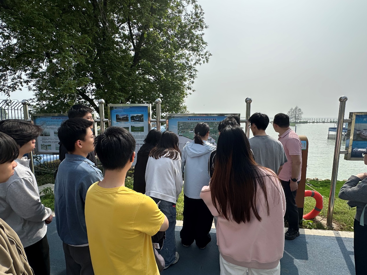 在新吴区藻水分离中心,师生实地观摩蓝藻收集、管道输送、加压处理及藻泥分离全流程,了解前沿的蓝藻处理技术与太湖生态治理实效。学生还现场与工作人员探讨藻泥的资源化利用价值。徒步在科技赋能的大溪港湿地公园,沉浸式体验生态保护与智慧治理的生动实践。