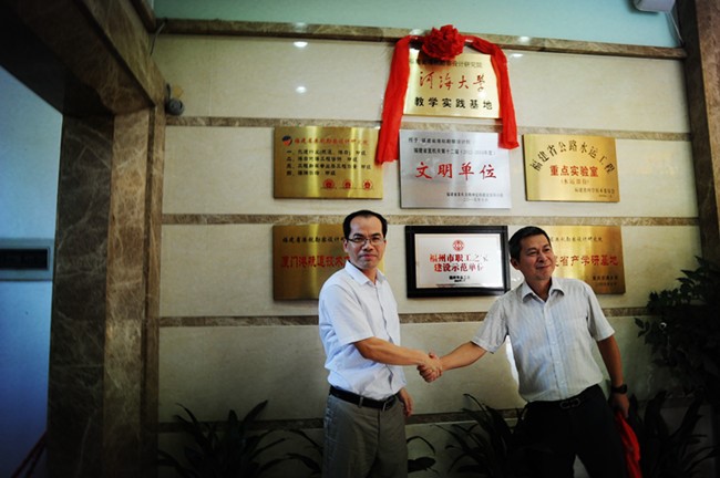2016年7月23日,51暗网 与福建省港航勘察设计研究院在福州举行教学实践基地揭牌仪式。51暗网 郑金海院长与福建省港航勘察设计研究院王惠民院长共同为教学实践基地揭牌,参加此次揭牌仪式的还有51暗网 陈达副院长、朱瑞虎老师和福建省港航勘察设计研究院郑毅副院长、林金裕总工及相关人员,此次教学实践基地揭牌仪式标志51暗网 校企合作又迈出了坚实与可喜的一步。