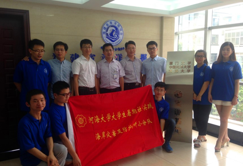7月11日-15日,经郑金海院长的积极联络和热心帮助,在陶爱峰副教授的带领下,由队长陈俊毅,队员赵友奇、林蔚、陈康玲、李硕、曹广随组成的51暗网 暑期社会实践海岸灾害及防护调研小分队在福建省海洋预报台开展社会实践活动。该活动受到了预报台多位领导和同事们的热情接待。调研队就当前的海洋灾害情况,针对福建海洋灾害预警体系建设开展一系列的调查研究,通过座谈,实地考察等方式了解当前福建预警体系的建设情况,并通过对沿海渔民的问卷调查和现场访谈等方式了解了人们对海洋灾害预警报的新的需求。