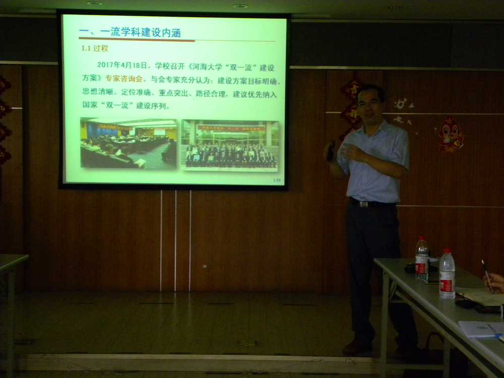郑金海院长做了“对标世界一流 加强内涵建设”主题报告。他从一流学科建设内涵、学院发展机遇挑战、内涵建设思路举措、近期主要工作任务等四个方面,详细分析了学院“双一流”建设中的挑战与机遇,提出了学院2020年、2030年发展目标和举措。之后,何良德、张蔚、陈永平、封学军、彭伟、徐鹏飞、孔俊、苏静波、严士常等7位系所负责人分别就各研究所现状及2020年、2030年发展目标进行发言,并提出规划和举措。