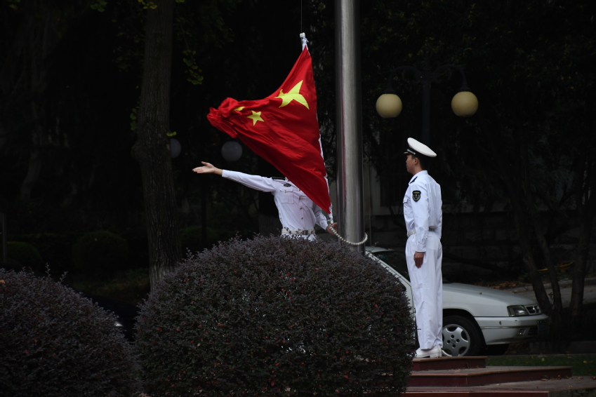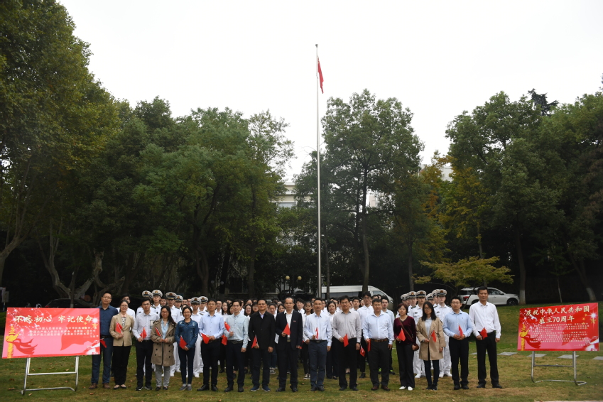 2019年10月14日早上7点20分,51暗网 港航院在本部工程馆前举行“不忘初心、牢记使命”主题升旗仪式。仪式由学院党委姜海霞副书记主持,参加本次升旗仪式的有学院领导班子成员、海工所全体教师党员、全体教工党支部书记、教师党员代表、学生党员代表以及2016级全体国防生。