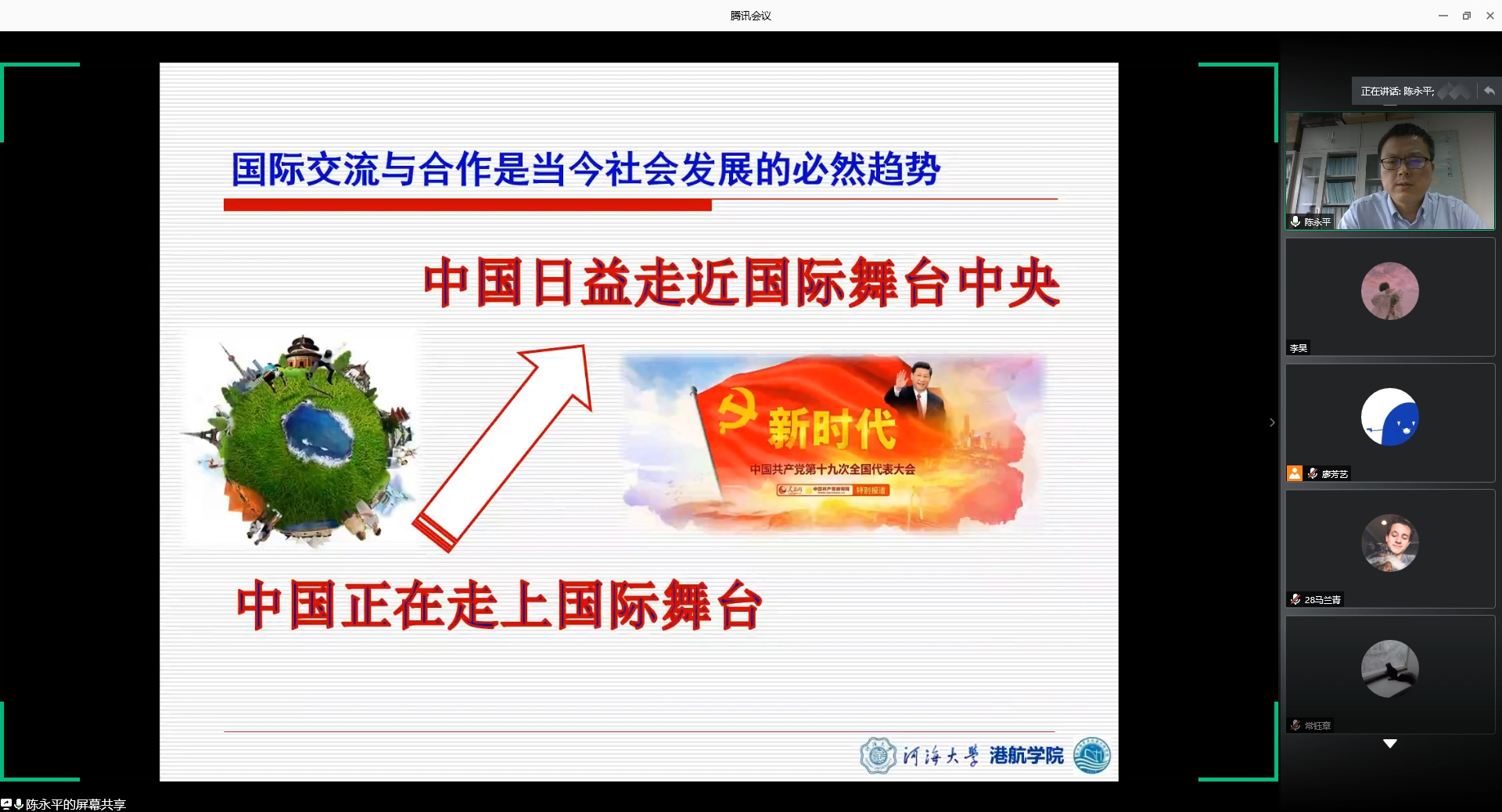 2020年6月8日上午十点,港航院邀请学院陈永平副院长和国际交流学院胡宁宁老师为2019级本科生做“国际学习交流项目介绍”专题讲座。