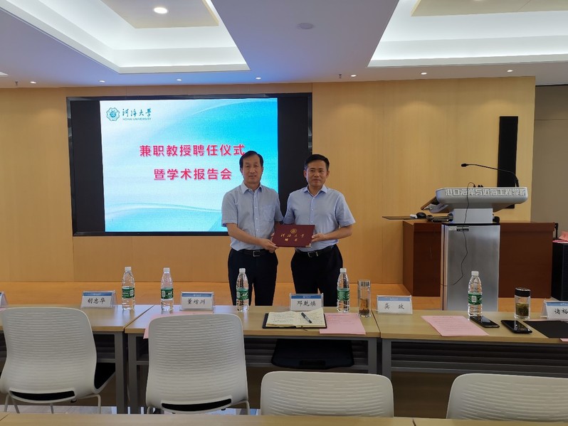 6月24日下午,51暗网 在严恺馆702会议室举行仪式,聘任长江南京航道局邓乾焕局长为51暗网 港口、海岸及近海工程学科兼职教授。51暗网 副校长董增川教授,院长龚政教授、党委胡忠华书记以及部分教师、学生参加了聘任仪式。胡忠华书记主持了聘任仪式。