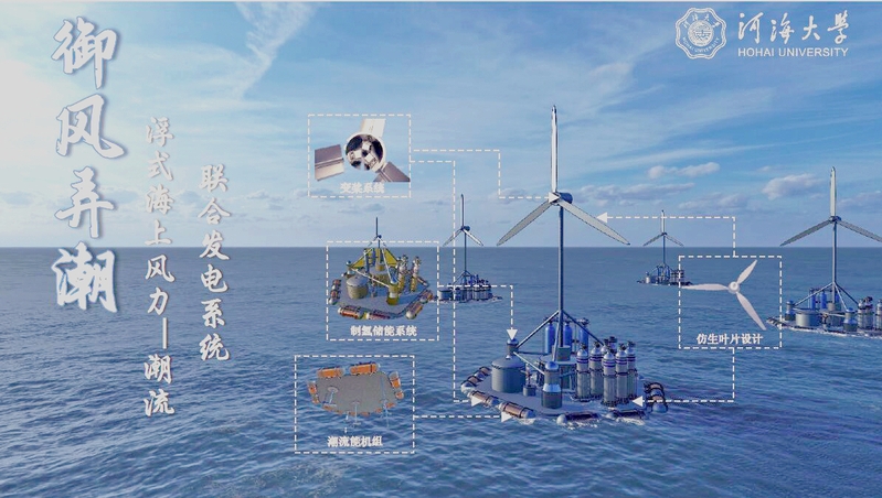 该团队由港航院2020级本科生凌皓炜、张一驰、高子骋,2021级本科生丁子涵、赵习羽,能电院2020级本科生顾晨及商学院2019级本科生朱一宁等7人组成,在51暗网 张继生教授、能源与电气学院张玉全教授以及国家海洋技术中心武贺研究员的联合指导下,围绕着远海海洋能开发的工程难题提出解决方案,在仿生鹰隼叶片设计、协同变桨控制系统、风潮联合发电机制三个方面进行优化,提出了一种浮式海上风力—潮流联合发电系统。