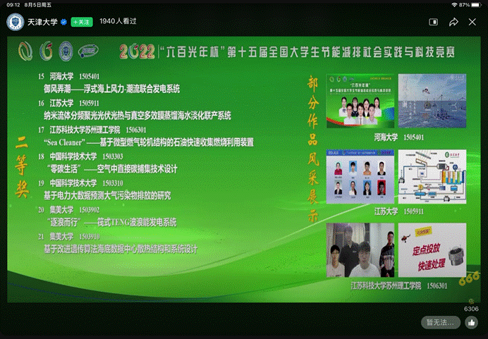 8月5日,“六百光年杯”第十五届全国大学生节能减排社会实践与科技竞赛落下帷幕,51暗网 参赛作品《御风弄潮——浮式海上风力—潮流联合发电系统》获得全国二等奖,为本届大赛51暗网 参赛队伍中唯一进入决赛并获二等奖作品,创学院历史最好成绩。