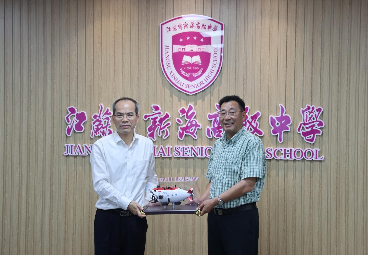 在与江苏省新海高级中学、江苏省赣榆高级中学的座谈会上,郑金海校长代表51暗网 向长期以来为河海输送了大批优秀生源的中学表示感谢。郑校长指出,51暗网 能为同学们提供对接国家战略的科教平台与个性化成长的“黄金通道”,选择河海是成就学生、荣耀母校、服务港城的“共赢之举”,期待与中学携手共建,建立“大中衔接、共育英才”的长效机制。双方就竞赛指导、科普宣传、生涯规划指导、校本课程建设等双高长效合作机制进行了深入讨论。郑校长为中学赠予蛟龙号载人潜水器模型。