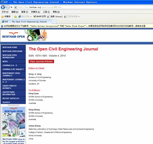 郑金海教授日前被聘为《The Open Civil Engineering Journal》(ISSN: 1874-1495)学术期刊副主编。