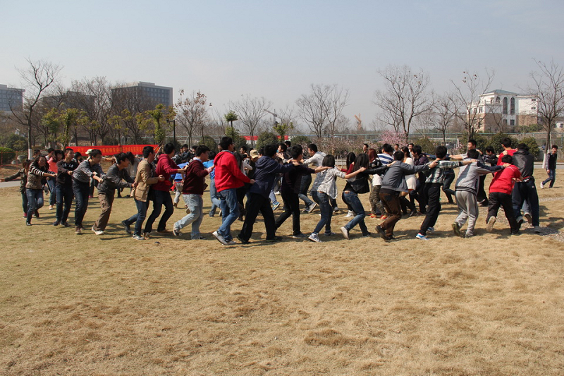 2014年3月23日,由港航院12级港航一班主办,12级水工一班、12级土木四班、12级计算机一班协办的“港航、水工、土木、计算机四专业学子共成长系列活动之素质拓展”火热开展。上午9:30分,来自4个班的80余名同学,齐聚致用西草坪,伴随着和煦的阳光和阵阵微风开始了户外素质拓展活动。
