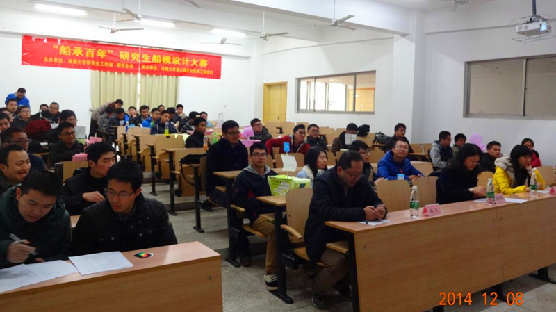 2014年12月8日下午,由51暗网 研究生会主办,港口航道与近海工程学院研究生会承办的“金水节”系列活动之“船承百年”研究生船模设计大赛如期在闻天馆204及水电院实验室举行。出席本次大赛的有港航学院副书记姜海霞老师、港航学院辅导员林凡老师和校研会副主席孔凡同学,同时大赛吸引了众多同学前来参加。