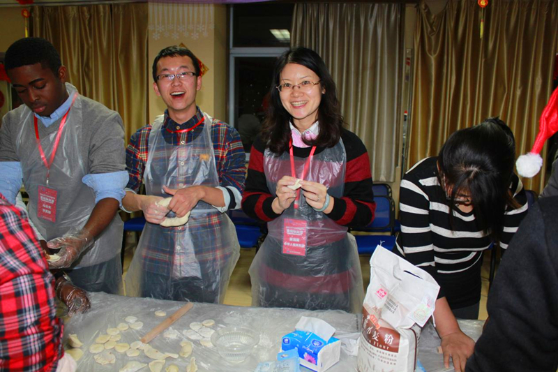为了让留学生们能体会到我们传统中国新年的喜庆氛围,学院特地为留学生准备了一道重头戏——教留学生们包饺子。陈院长现身说法,亲自示范了如何擀面皮、包饺子。学院领导和老师也都全程参与其中,现场气氛一度达到了高潮。姜书记和陈院长为大家煮起了饺子,留学生们都是第一次包饺子,他们包出来的饺子造型独特,形状各异,但这丝毫不影响他们品尝饺子的心情。为了让这15位中港留学生在中国度过一个有意义的圣诞节,我们特地为留学生们准备了刻有他们中文名字的印章。郑院长更是亲自扮演起圣诞老人,给大家送上圣诞节礼物,也带来圣诞节的惊喜和感动。