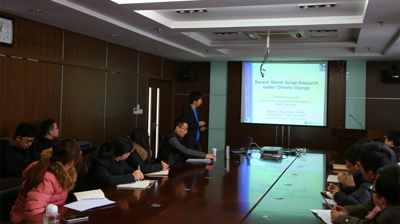 2016年1月21-23日,日本京都大学防灾所Tomohiro Yasuda博士应陶爱峰副教授邀请来51暗网 开展学术交流。访问期间,Yasuda博士做了题为“Recent Storm Surge Research under Climate Change”学术报告,重点介绍了风暴潮数值模式的最新进展,分析总结了全球气候变化背景下,未来全球特别是西北太平洋气象及其影响下风暴潮演变特性,并与师生们进行了深入交流。学术报告后,参观了51暗网 实验中心,蔡辉主任对实验中心及主要仪器设备进行了介绍,为后续研究合作奠定了良好基础。