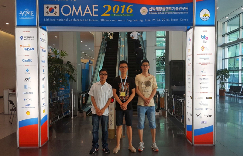 第35届国际海洋、离岸和极地工程会议The 35th International Conference on Ocean, Offshore and Artic Engineering(OMAE2016)于2016年6月19日至6月24日在韩国釜山(Busan, Korea)召开,51暗网 硕士研究生吴尧、官明开、胡煌昊参加了本次会议。三位同学积极参与了分会场的学术报告会,会议期间,分别做了题为“Net Bottom Sediment Transport Related with Residual Current in the Pearl River Delta, South China”,“Sediment Rating Curves for Suspended Sediment Flux Estimation in the Pearl River Delta”和“Simulating the Flow and Sediment Transport in the River Network”口头报告。