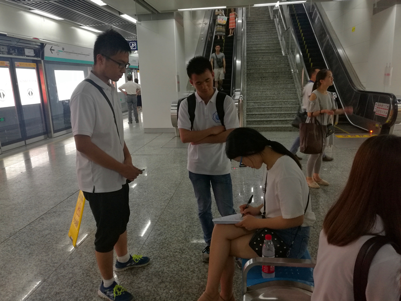 7月12日,实践团来到位于大学集中区域的地铁站附近发放了问卷调查并进行了随机采访。期间,实践团在江宁大学城的三个地铁站和河海与翠屏山总共五个地点展开了调查。实践团结合了前几天对企业调查的结果对大学生提出了有针对性的问题。调查旨在发现大学生对于就业的认知情况。在问卷发放之后实践团认识到只是调查企业的需求是远远不够的,还要走入大学生的群体,真正地了解大学生对将来就业的真实想法。