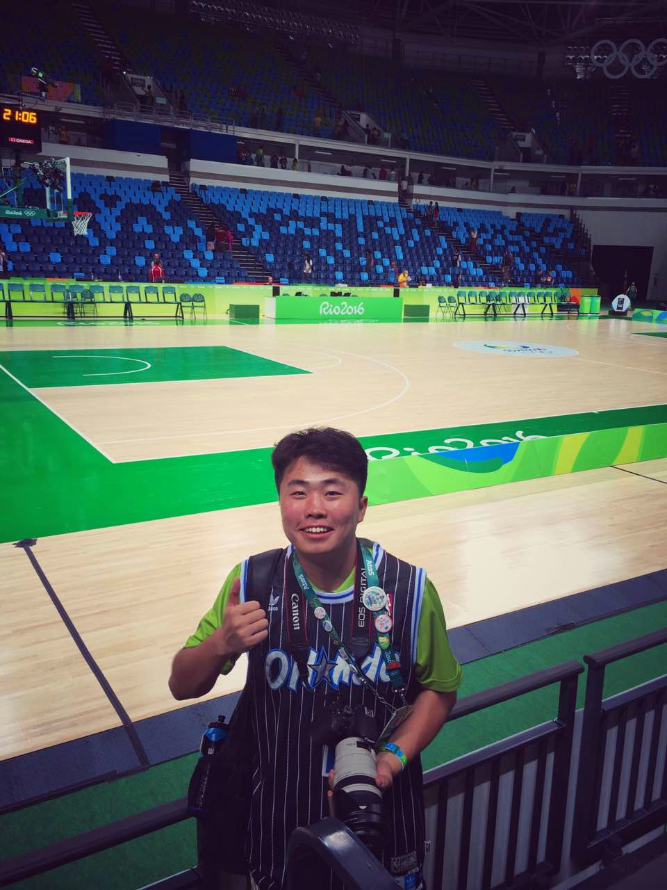 之后,便是2016年的夏天,我来到里约,成为了一名奥运会志愿者。从小开始,参与奥运便是我的梦想,而能够以志愿者身份真正参与到奥运会的组织工作中,更是让我激动不已。组委会分配给我的工作是观赛礼仪,也就是维护我所在的摔跤柔道馆的比赛秩序,保证不出现安全事故。工作的时候,我每天需要站在观众席近7个小时,如果有观众情绪激动(事实上巴西人非常容易激动,尤其是观看摔跤柔道比赛时),我需要上前提醒。同时由于场馆设计有一些缺陷,经常会有观众找不到自己位置进而乱坐别人位置的情况发生,我需要耐心地帮他们寻找位置,并在这过程中尽量避免打扰到其他观众。会有一些态度比较不好的观众,如果怠慢了,他们会抱怨,所以我必须对场馆布局了如指掌。工作虽然辛苦,但每次也都会有热情的巴西人上来主动打招呼,询问我来自哪里,感谢我为他们国家的奥运会提供的帮助,并且会主动要求和我合影,与我击掌、拥抱。他们的支持与信任,便是支撑我继续完成志愿工作之路的动力。
