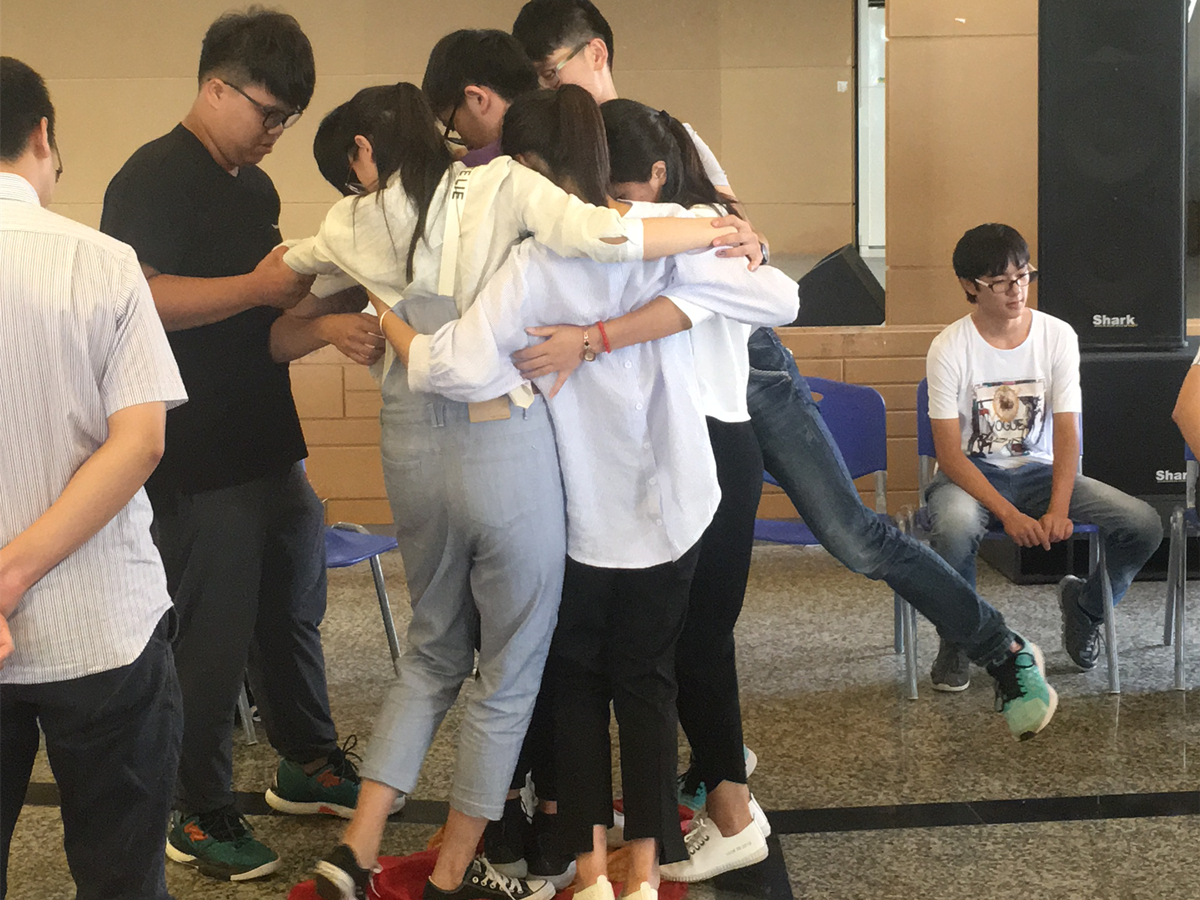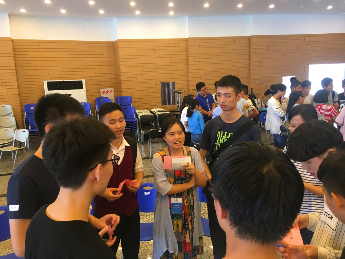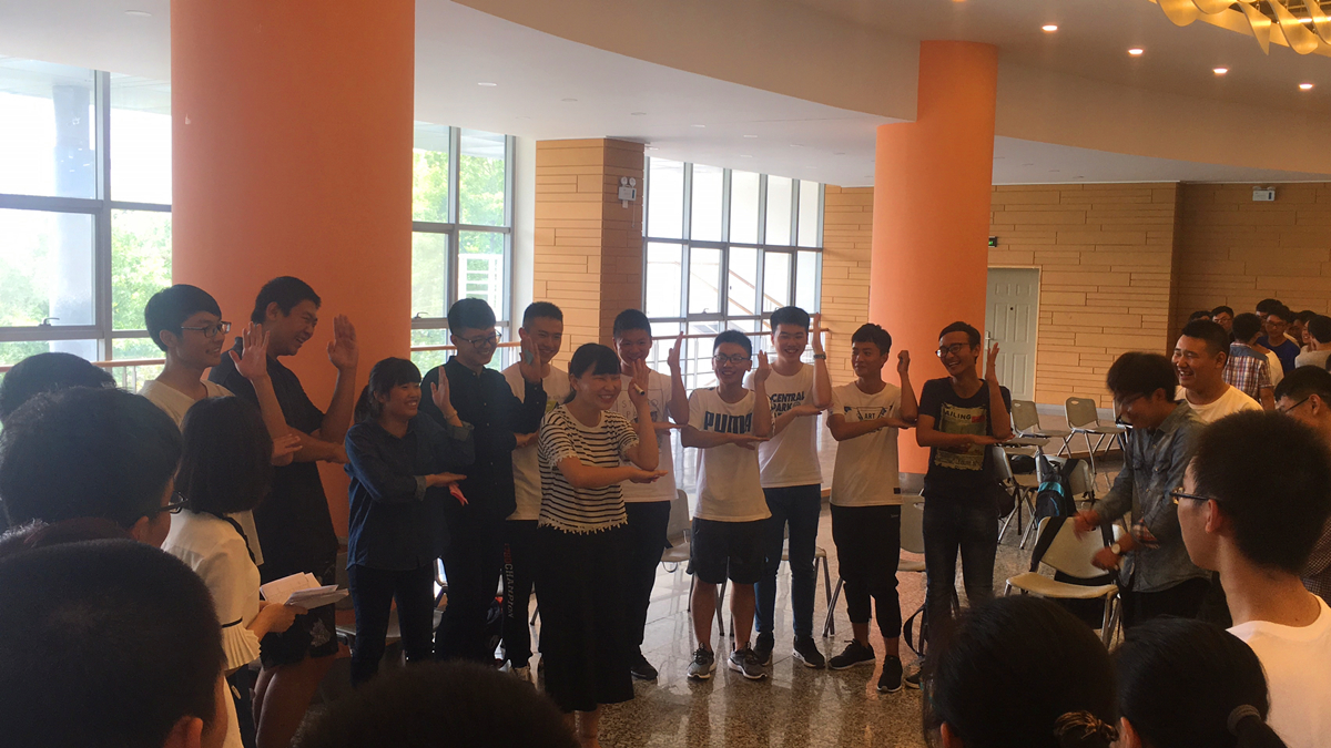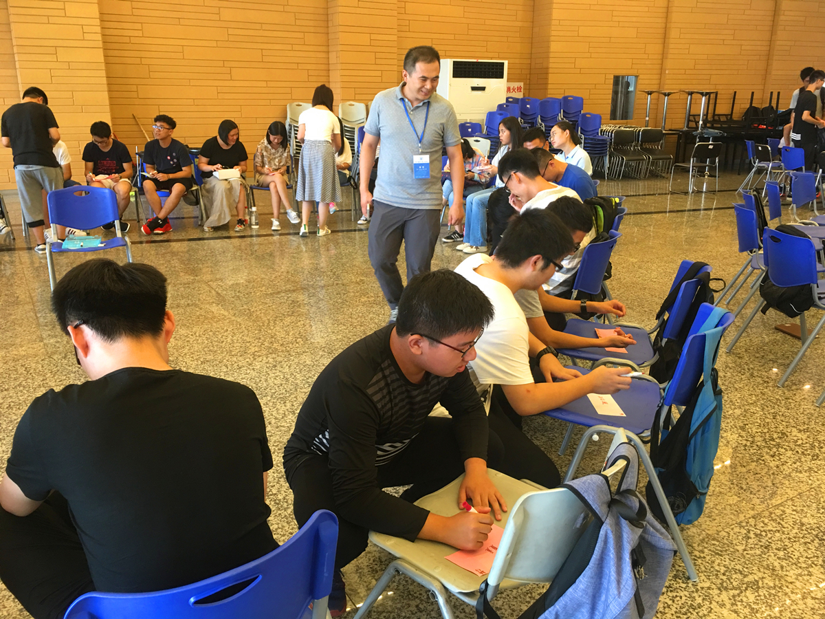 各班主题班会通过团体辅导的方式进行,分为“大风吹”、“初来乍到”、“同舟共济”、“畅想我的大学”、“把心留住结束与祝福”五个环节,新生以班级为单位,围坐一圈,通过环节的设计,在游戏中互相认识,之后在“同舟共济”环节里,小组成员团结一致,集体商议,共同完成了看似不可能的任务,在整个过程中感受团队精神,进一步拉近了彼此的距离。