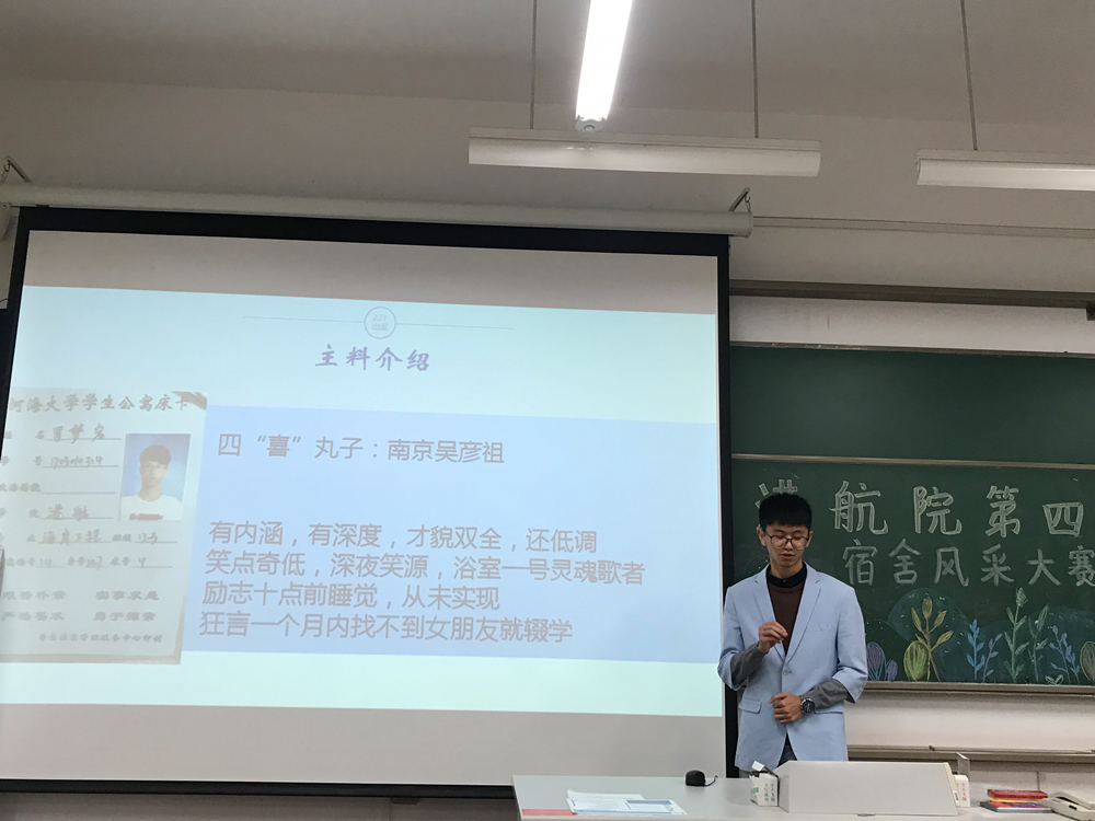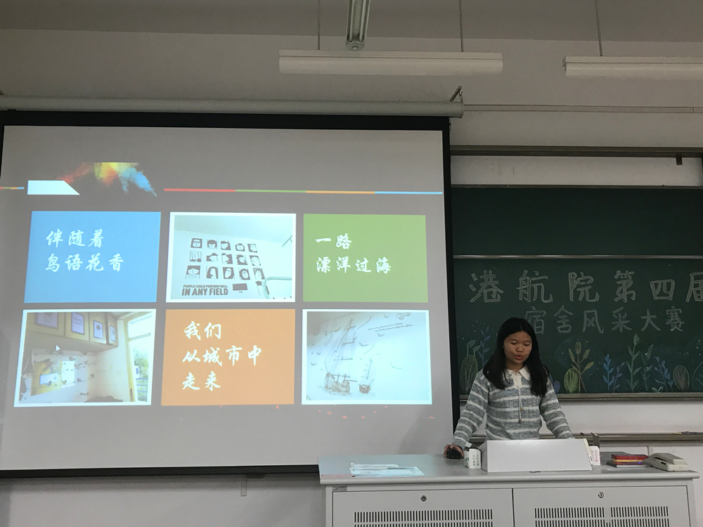 2017年10月10日晚六点三十分,港航院第四届宿舍风采大赛在博学楼B208成功举办。出席本次比赛的嘉宾有港航院2017级辅导员王玲老师,2016级辅导员张同鑫老师等。