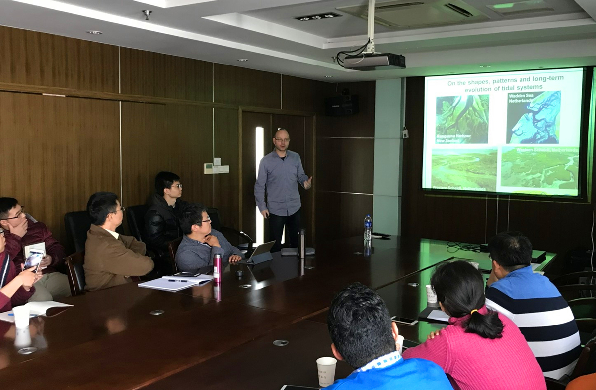 2017年11月20-27日,荷兰乌特勒支(Utrecht)大学地球科学学院助理教授Barend van Maanen博士应周曾老师邀请,来51暗网 进行了为期一周的学术访问。期间,van Maanen博士围绕其最新的科研进展,作了题为“On the shapes, patterns and long-term evolution of estuaries”的学术报告。在报告中,van Maanen博士介绍了他所属的团队目前应用的数值模拟、物理实验及现场观测等多种技术手段,系统性阐述了红树林为主盐生植物影响下河口地貌的演变过程及机制。报告由周曾老师主持,学院多位从事河口海岸泥沙运动以及地貌学方向的老师以及研究生参加了学术报告会。报告后,van Maanen博士与在座的师生进行了深入的学术交流,气氛活跃。