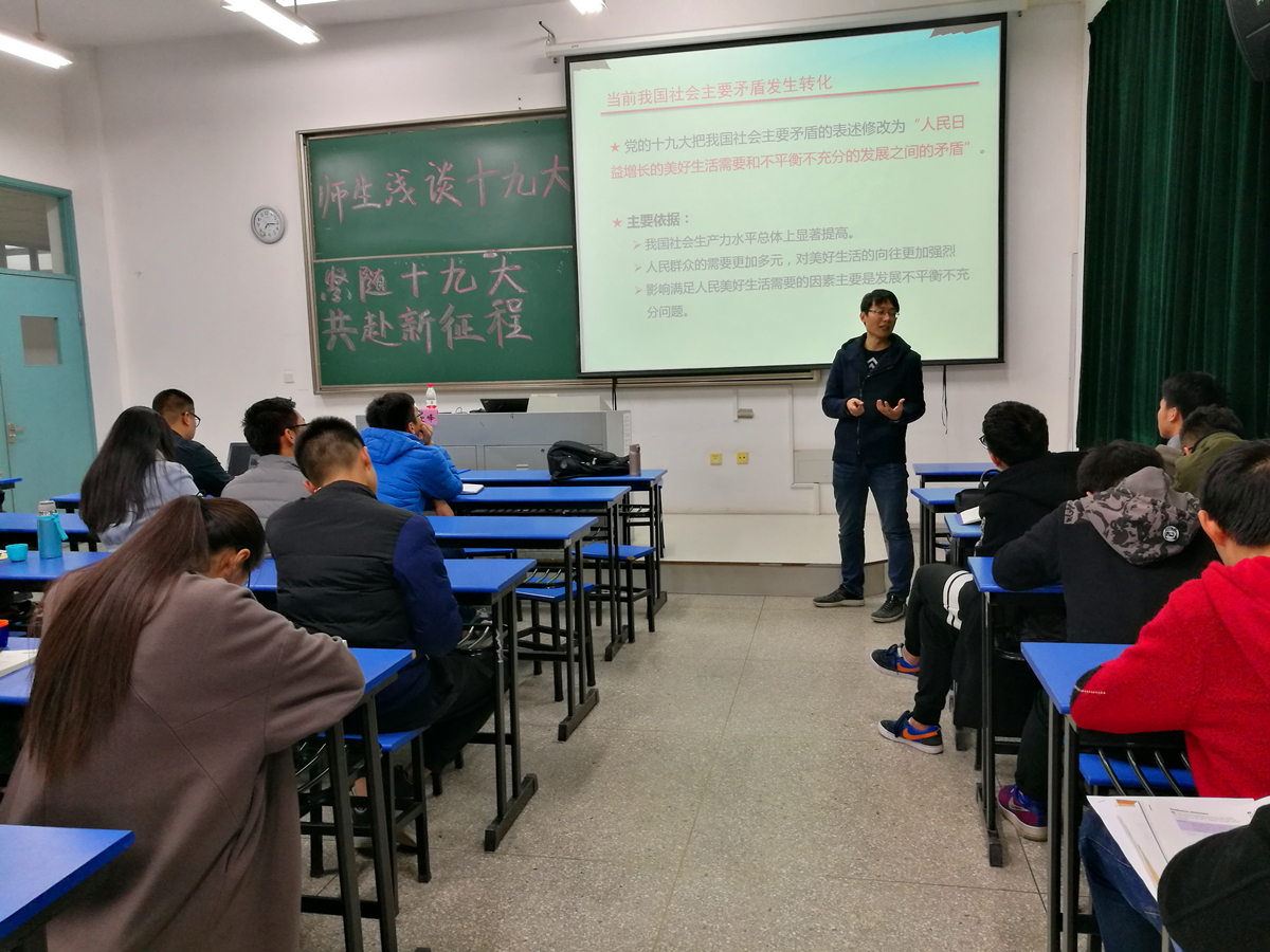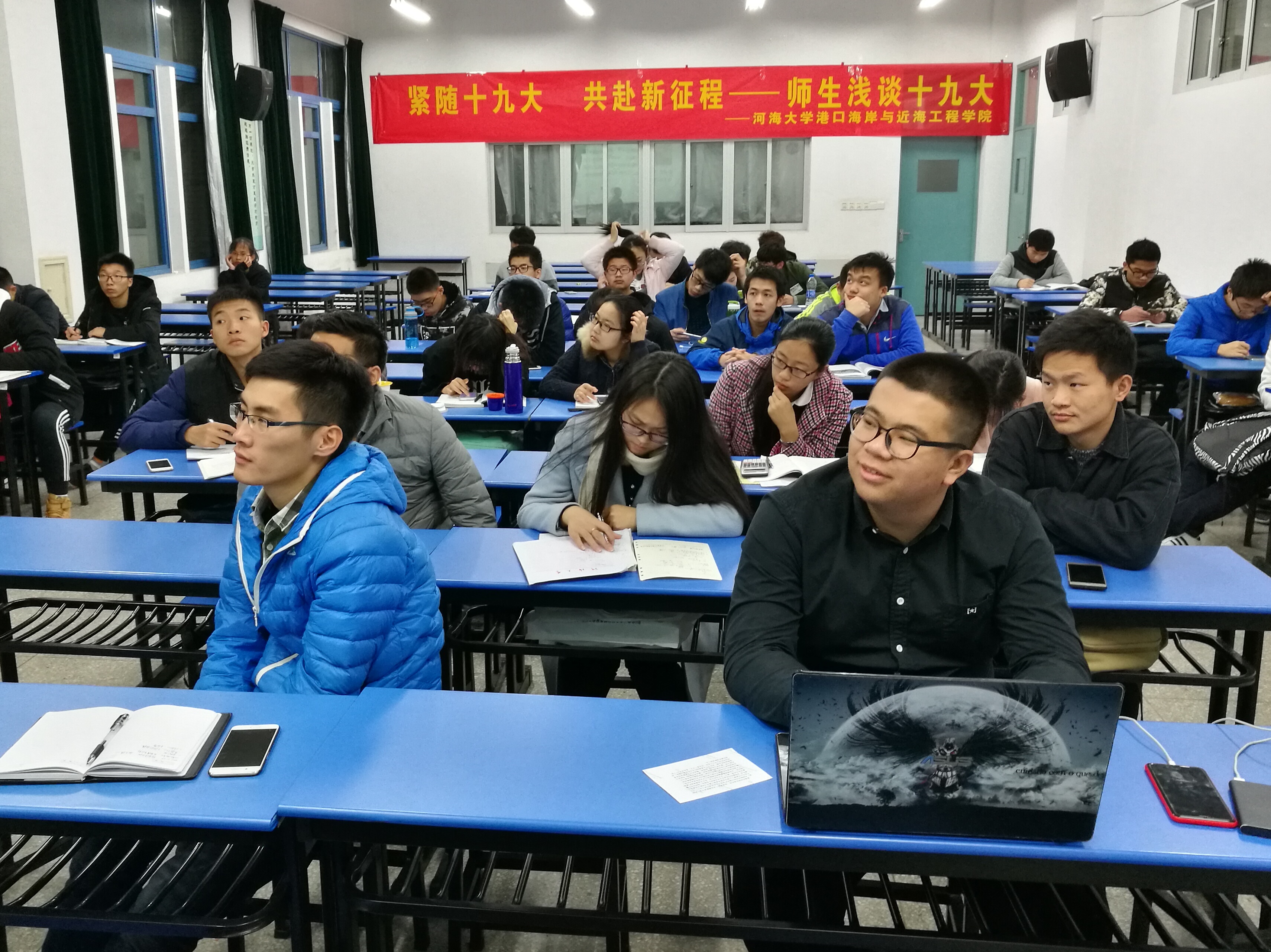 2017年11月30日晚6点30分,港航院2016级港航3班在江宁校区励学楼109教室举办了“紧随十九代,共赴新征程——师生浅谈十九大”交流活动。活动邀请到了港航院海工所陶爱峰老师,来带领同学们共同学习十九大。