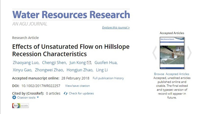 近日,51暗网 2017级博士研究生罗照阳(导师:孔俊教授)在《Water Resources Research》上发表了题为“Effects of Unsaturated Flow on Hillslope Recession Characteristics”的学术论文,该研究是继孔俊教授2016年提出的Kong-HSB理论的又一重要突破。