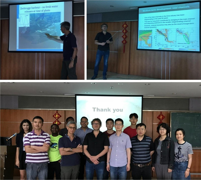 2018年5月17日至5月18日,荷兰代尔夫特理工大学、荷兰三角洲水利科学研究院Han Winterwerp教授与Bas van Maren副教授来51暗网 进行学术交流和访问。Han Winterwerp教授作了题为“Sediment-fluid interactions”的学术报告,报告系统介绍了细颗粒泥沙与水流的相互作用以及其在河口海岸地貌演变中的应用价值。Bas van Maren副教授做了题为“Estuarine morphology, turbidity and human interventions”的学术报告,报告围绕欧洲Ems河口地貌在自然营力和人类活动影响下的演变过程和机理,指出疏浚引起的河道加深、泥沙运动、底床降阻、潮汐不对称性之间的反馈机制。Han和Bas与在座师生进行了深入的学术交流。学院周曾老师等多位从事河口海岸泥沙运动及地貌学研究方向的老师以及研究生参加了学术报告。
