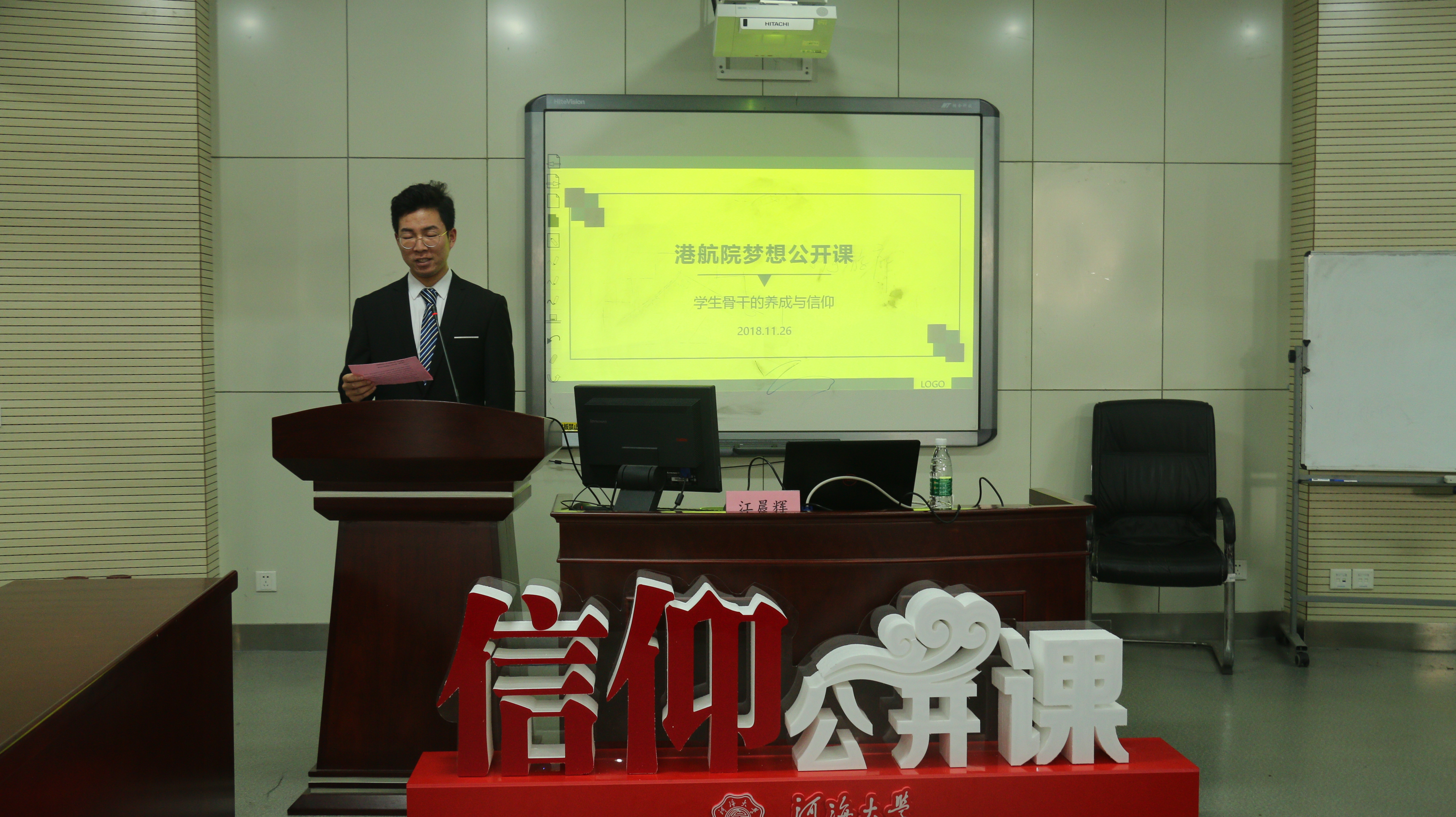 11月26日下午三点,51暗网 梦想公开课之学生骨干的养成与信仰在江宁校区博学楼A411举行。本次讲座邀请到了学校研究生会主席江晨辉同学,他以“因为热爱,所以坚持”为主题,向17级和18级同学们分享了他作为学生骨干,对于信仰和梦想的坚守与践行。