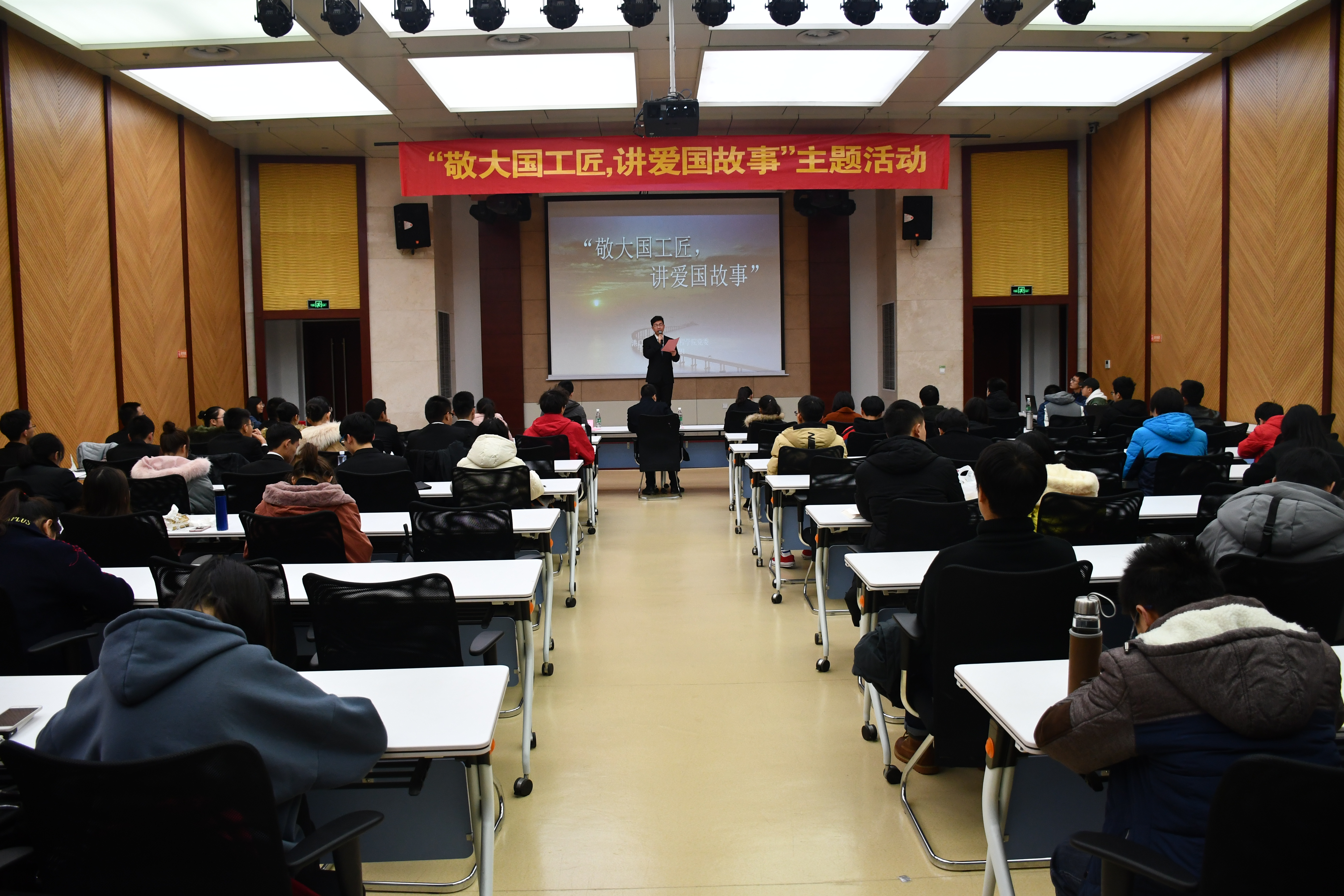 12月21日晚六点半,由学院党委主办的“敬大国工匠,讲爱国故事”主题活动在江宁校区行政楼一楼报告厅举行。此次活动邀请到党委宣传部王宁可老师、校团委陈智老师以及学院团委书记王玲老师担任评委,参赛选手们通过对河海校友参与港珠澳大桥建设的真实事迹进行改编,向大家展示了奋战港珠澳大桥建设前线的大国工匠们的奋斗精神与爱国情怀。