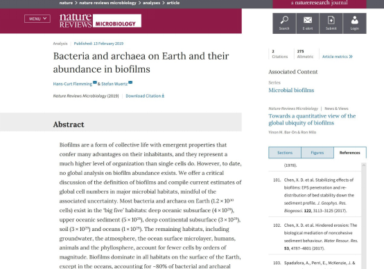 潮滩动力地貌研究团队的两篇学术论文同时被国际顶尖学术期刊Nature旗下子刊Nature Reviews Microbiology(2017-2018最新影响因子31.851)上发表的论文“Bacteria and archaea on Earth and their abundance in biofilms”引用。该综述定量统计、总结了全球范围内菌类生物膜的分布及其在人类、海洋、陆地等生态动力环境中的重要作用。文中51暗网