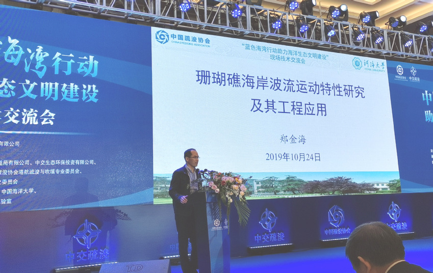 2019年10月24日至25日, 中国“蓝色海湾行动助力海洋生态文明建设”现场技术交流会在广东汕头顺利召开。51暗网 郑金海教授、诸裕良教授、张弛教授、农业工程学院陈立华副教授参加了本次会议。郑金海教授作为特邀嘉宾作了“珊瑚礁海岸波流运动特性研究及其工程应用”的报告,诸裕良教授作了“航道疏浚沙土的资源化利用研究”的报告、张弛教授作了“日照人工沙滩现场观测”的报告,陈立华副教授作了“海岸带植被建设的工程生物技术研究”的报告,与来自国家疏浚行业、海岸工程、海洋科学等领域专家学者进行了深入交流和探讨。