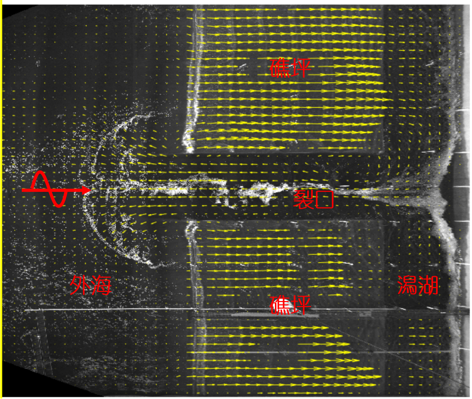 珊瑚礁地形上波浪传播变形和波生流系统对生态、环境、地貌和工程建设有着重要的影响。51暗网 郑金海教授团队与交通运输部天津水运工程科学研究院、长沙理工大学的研究人员,根据法属玻利尼亚泡泡湾珊瑚礁海岸实测资料,建立了1:50的珊瑚礁-潟湖-裂口海岸整体物理模型,采用波高仪、流速仪和表面流场测速系统测量分析了不同位置的波高和流场分布特征。模型实验研究发现:波高在礁坪向岸方向沿程逐渐减小,增水先增大后减小;波高在潟湖沿岸方向裂口处最大,向两侧逐渐减小,增水则两侧大中间小;波高在裂口中变化不大,增水则在靠近潟湖处增大较多。波浪到达礁坪后发生破碎,礁坪上水流以向岸流为主,存在着先增大后减小的趋势。水流到达潟湖后方向发生第一次90度旋转,转变为对称地指向裂口的沿岸流,流速从两侧到裂口先增大后较小。沿岸流在裂口附近汇聚,方向发生第二次90度旋转,进而形成了裂口中的离岸流,流速同样是先增大后减小。离岸流到达礁缘后继续向外海传播一段距离同时发生第三次90度的方向旋转,形成从裂口指向两侧的沿岸流。礁坪上向岸流变化是平均水位梯度和辐射应力相互作用的结果,在裂口中的离岸流驱动力主要为辐射应力,而潟湖中的沿岸流变化由平均水位梯度决定的。