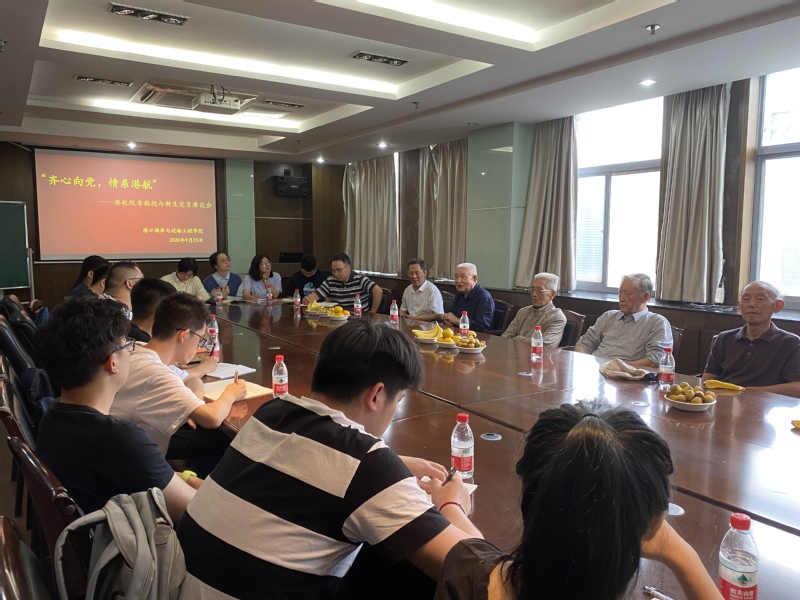 9月23日下午,港航院“齐心向党,情系港航”——老教授与新生党员座谈会在严恺馆502举行。座谈会邀请到葛明达、洪广文、鲁子爱、舒红缨、唐耿星、徐金环、张东生七位老教授与2020级研究生新生党员进行交流,学院党委书记胡忠华主持座谈会,党委副书记沈国军出席。