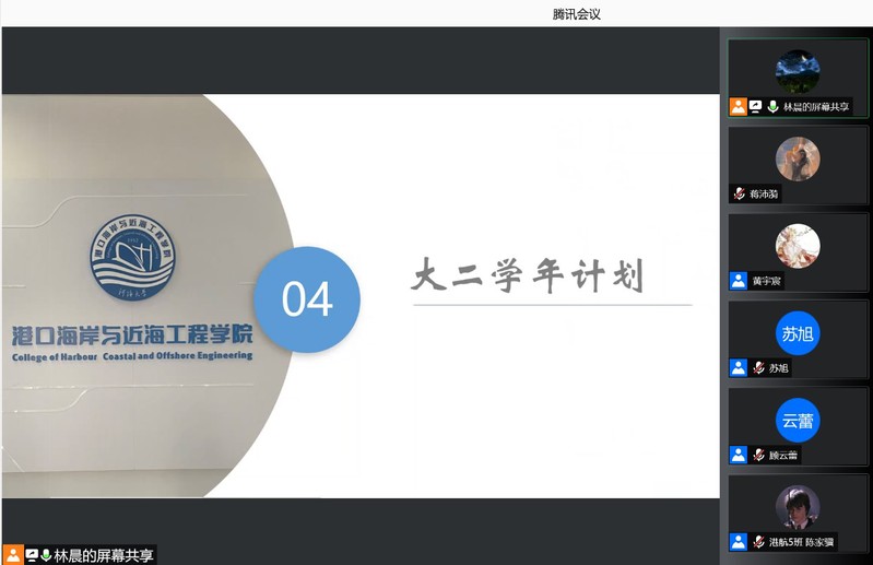 最后,林晨老师为同学们整理了大二学年的重要时间节点表,概括了同学们在大二学年经历的学习科研、社区管理、思想引领等多方面的重要事件,结合培养方案的要求对大二学年的学习、生活、活动等方面提出了规划建议,介绍了学院为2020级学生发展推出的配套方案,并通过港航院优秀的学长学姐的亲身经历鼓励同学们做好学业生涯、职业生涯规划,做到功在平时,认真完成学业任务并积极拓展自身能力素质。
